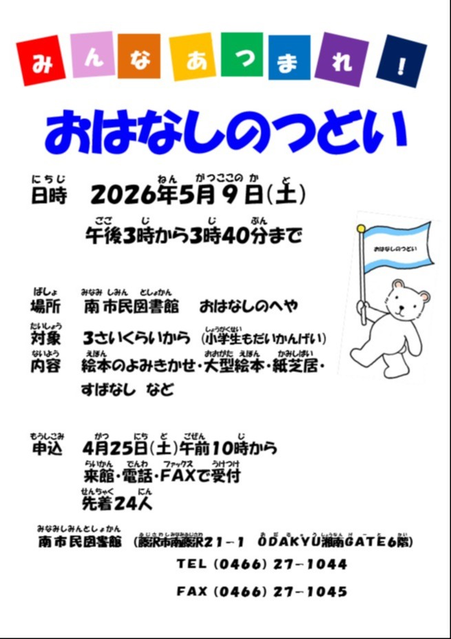 南市民図書館 こどもの読書週間行事『おはなしのつどい』 南NEW