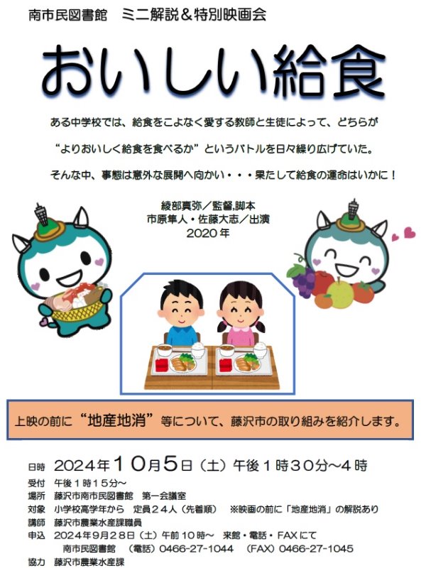 対 象:小学校高学年から ※映画の前に「地産地消」の解説あり
