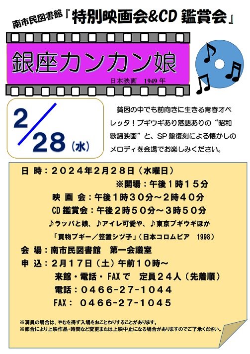 映 画 会 :午後1時30分~2時40分