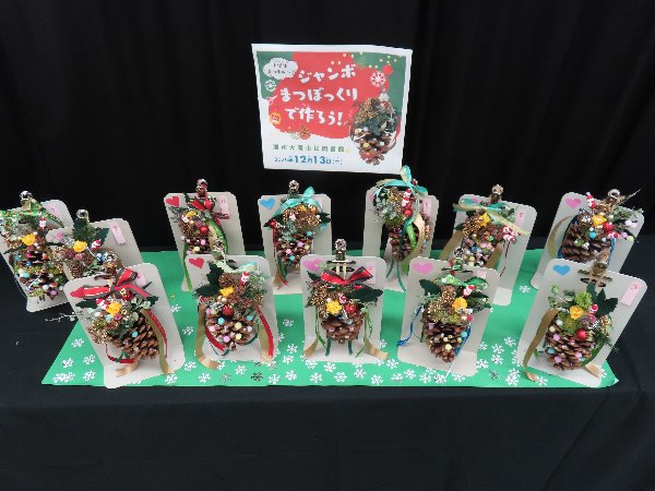 12月13日に、「お祝いの日」をテーマにしたブックトークとジャンボまつぼっくりを使った工作を楽しみました。