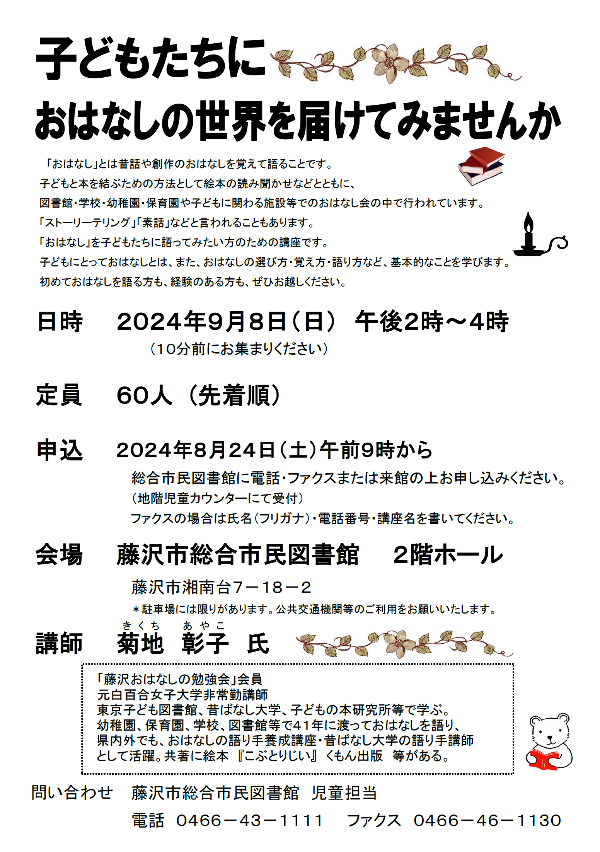 「おはなし」を子どもたちに語ってみたい方のための講座です。