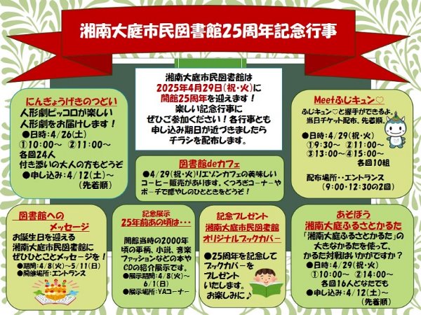 いべんと 湘南大庭市民図書館 25周年記念行事(終了しました) 終了しました 湘南大庭
