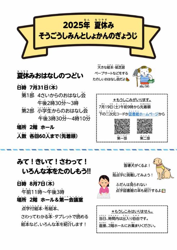 いべんと 総合市民図書館 2025年夏休み そうごうしみんとしょかんのぎょうじ 終了しました 総合
