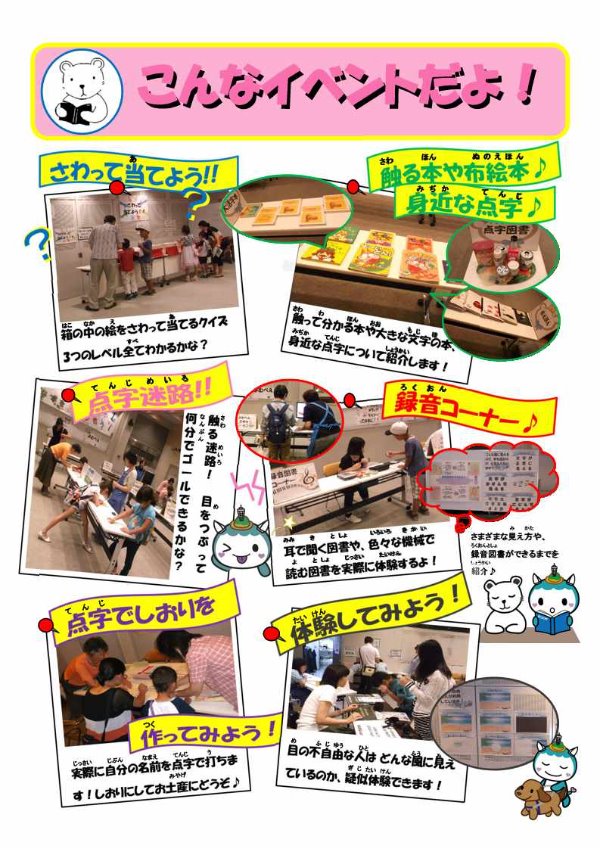 いべんと 点字図書館「みて!きいて!さわって!いろんな本をたのしもう!!」を開催します! 終了しました 総合