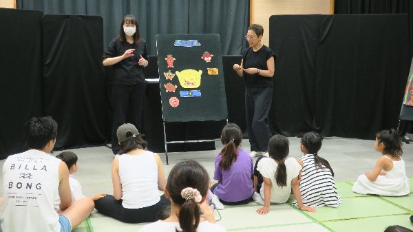 「たのし~いおはなし会」ではパネルシアターや手遊びを行い、「こわ~いおはなし会」では部屋を暗くしてこわい話を素話で語りました。子どもから大人まで夏のおわりのひとときを楽しみました。