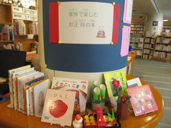 総合市民図書館 子ども図書館展示 「家族で楽しむお正月の本」