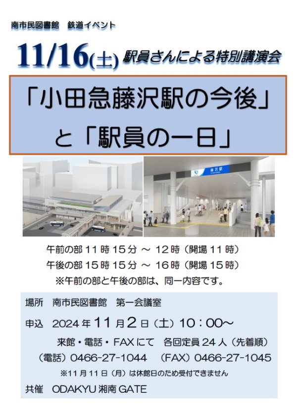 内 容:「小田急藤沢駅の今後」と「駅員の一日」