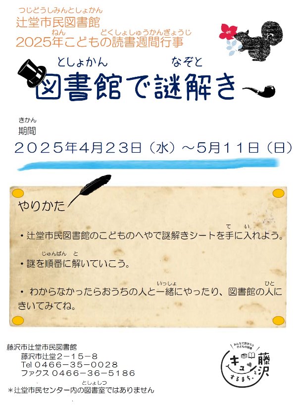 辻堂市民図書館 2025年こどもの読書週間行事『図書館で謎解き』 終了しました 辻堂