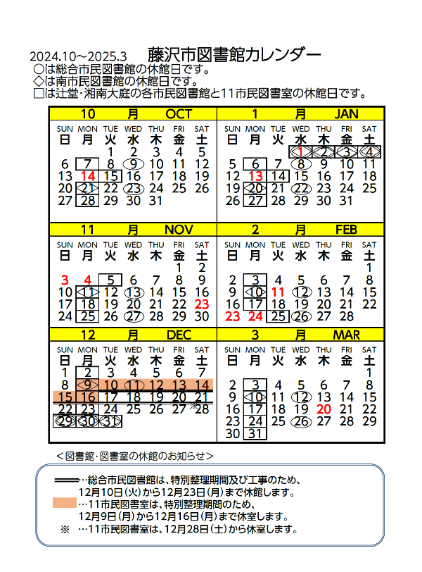 令和6年度特別整理・館内工事に伴う休館・休室のお知らせ 終了しました 全館