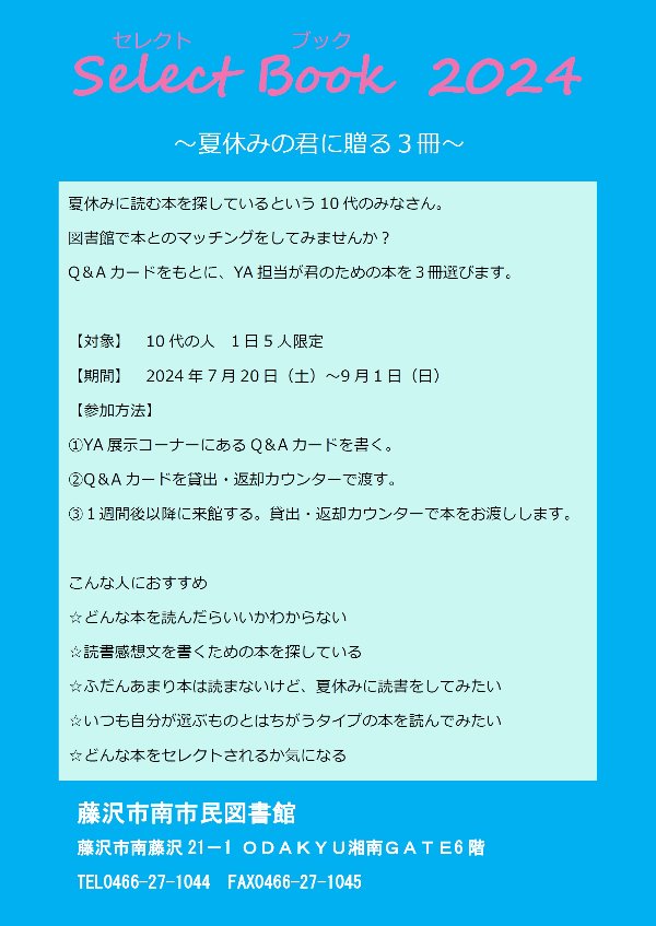 イベント 南市民図書館「セレクトブック2024~夏休みの君に贈る3冊~」 終了しました