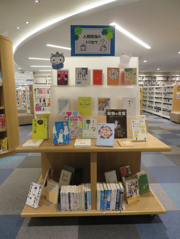 職場の同僚、家族、友人などとのコミュニケーションのコツや人間関係の改善に役立つ資料を展示しています。 成人展示コーナー①にて 5月19日(日曜日)まで