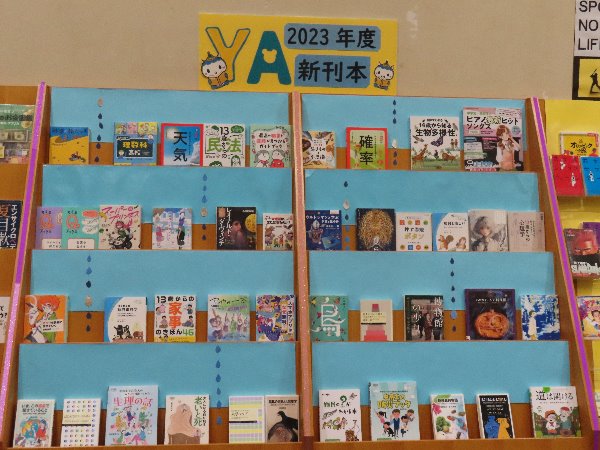 2023年度のYAの新刊本をあつめました。 YAでは2023年4月から2024年の3月までの一年間で、様々なジャンルの本を購入しました。 新しい本たちに会いにきてください。きっと興味のある本と出会えると思います。 YAコーナーで、7月21日(日曜日)まで。