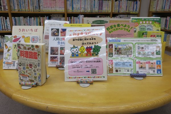 食への関心を高める本、親子で作れるレシピの本などを展示します。
