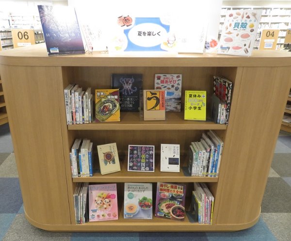 暑い季節になりました。 冷たい食べ物や涼しげなものなど 夏を楽しく過ごす本を集めてみました。 成人展示コーナー②にて 8月18日(日曜日)まで