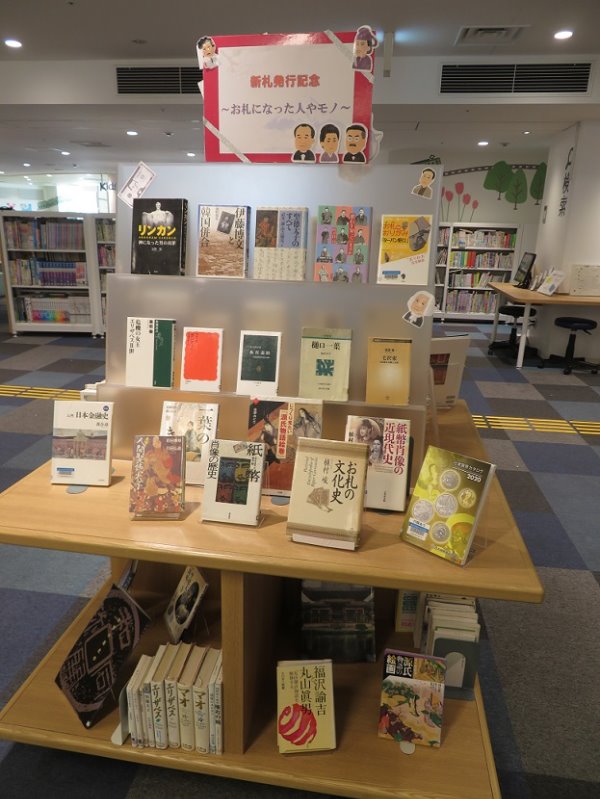 2024年7月3日から新札の発行が開始されることを記念し、渋沢栄一・津田梅子・北里柴三郎のほか、 国内外でこれまでお札に使用された人やモノ及びその関連資料を展示しています。 成人展示コーナー①にて 9月8日(日曜日)まで