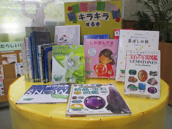 キラキラするものなーに?宝石、お星さま、ガラスにゼリー! 気持ちも浮き立つキラキラの本、あつめました エントランス丸テーブルで、10月6日(日曜日)まで