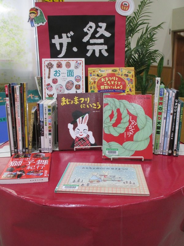 日本の祭、世界の祭、お祭の絵本…。 古今東西の「祭」の本、集めました。 エントランス丸テーブルで、2月2日(日曜日)まで