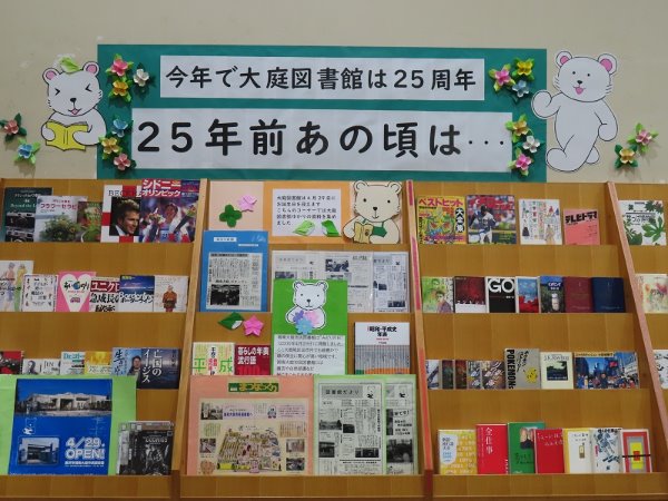今から25年前の2000年4月29日に、 湘南大庭市民図書館は開館しました。 開館当時のゆかりの品と共に、 その頃に流行った小説や時事の本、音楽(CD)など、 様々なジャンルの資料を紹介しています。 25年前を振り返ってみませんか? YA(ヤング・アダルト)コーナーで、6月1日(日曜日)まで展示しています。