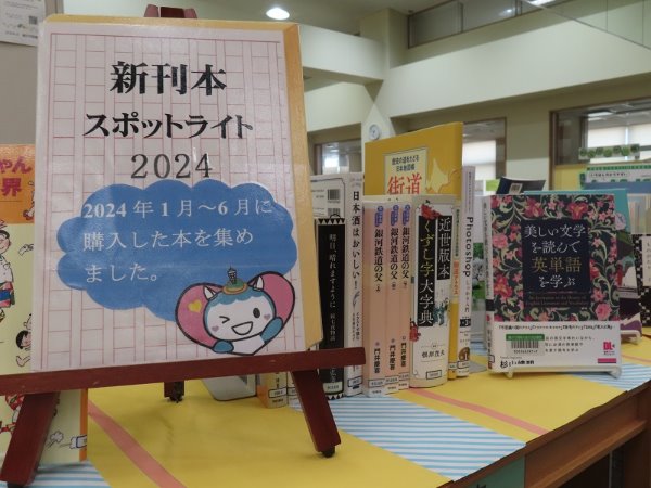 2024年1月から6月までに、購入した新刊本を並べています。 当時は予約がたくさんあって読めなかった本も、 これからゆっくり手に取って読んでみませんか。 大型本書架の上で、5月25日(日曜日)まで展示しています。