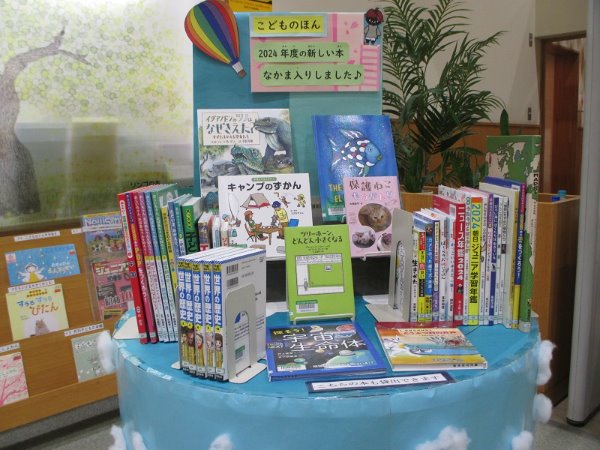 2024年度に入った新しい児童書を紹介するコーナーです。 思いもかけない一冊にめぐりあえるかも。 ぜひお立ち寄りください。 エントランス丸テーブルで、7月13日(日曜日)まで。
