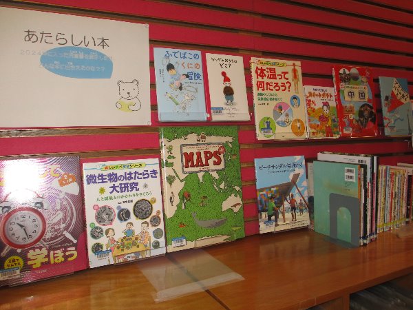 2024年に購入した「あたらしい本」を展示しています。 この機会にぜひ読んでみて下さい。どんな本に出会えるかな?! 総合市民図書館 紙芝居棚上にて 7月22日(火曜日)まで。