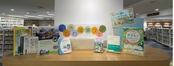ふじさわ環境フェアは、環境保全や地球温暖化防止をテーマに、市民・事業者・大学・行政と協働し、 子どもから大人まで楽しみながら学べるイベントで、今年は11月15日(土曜日)に市役所本庁舎で開催されます。これに先立ち図書館では、環境保全や地球温暖化等の関連本を展示し、パンフレットを配布しています。 藤沢市ゼロカーボン推進課とのコラボ展示です!